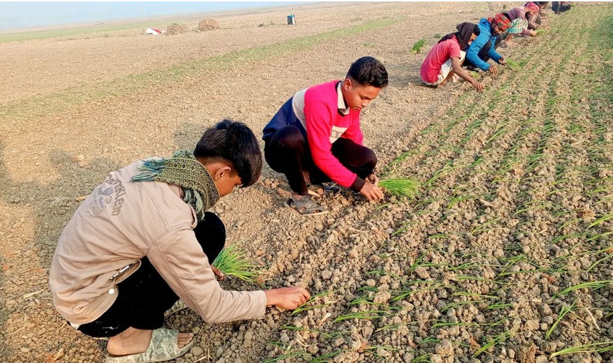 পেঁয়াজ রোপণে শ্রমিক সংকট, মাঠে নেমেছে শিক্ষার্থীরা