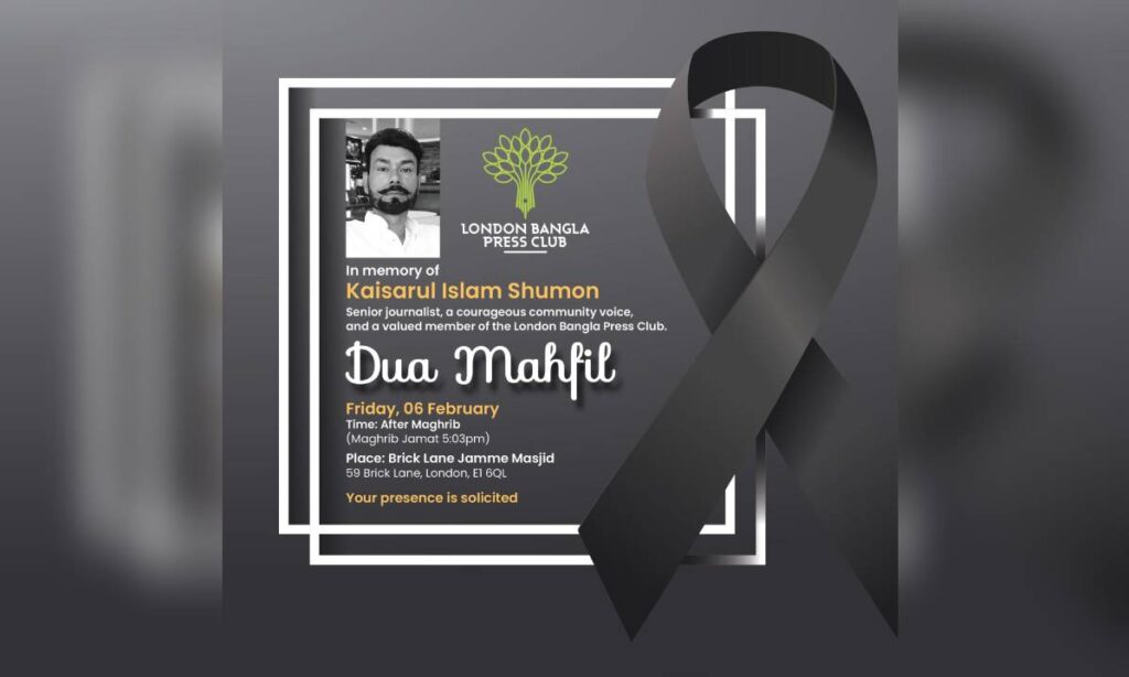 লন্ডন বাংলা প্রেস ক্লাবের উদ্যোগে প্রয়াত সুমনের জন্য দোয়া মাহফিল আজ
