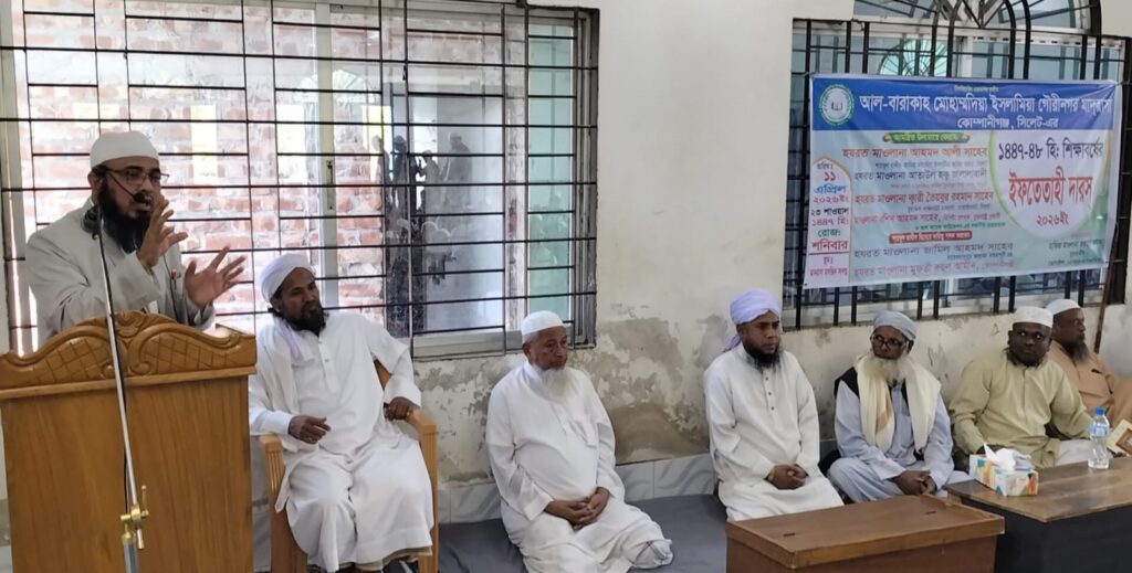 সিলেটের কোম্পানীগঞ্জ উপজেলায় অবস্থিত আল-বারাকাহ মোহাম্মদিয়া ইসলামিয়া গৌরীনগর মাদ্রাসায় ১৪৪৭-৪৮ হিজরি শিক্ষাবর্ষের ইফতেতাহী দারস ও দোয়া মাহফিল অনুষ্ঠিত হয়েছে। শনিবার (১১ এপ্রিল) মাদ্রাসা মসজিদ সংলগ্ন প্রাঙ্গণে এ অনুষ্ঠানের আয়োজন করা হয়। মাদ্রাসার মুহতামীম হাফিজ মাওলানা ফয়জুর রহমানের সভাপতিত্বে এবং হাফিজ মাওলানা ইমরান হুসাইন সেলিম ও মাওলানা আফজল হুসাইনের সঞ্চালনায় অনুষ্ঠানে দেশ-বিদেশের খ্যাতিমান উলামায়ে কেরাম অংশগ্রহণ […]